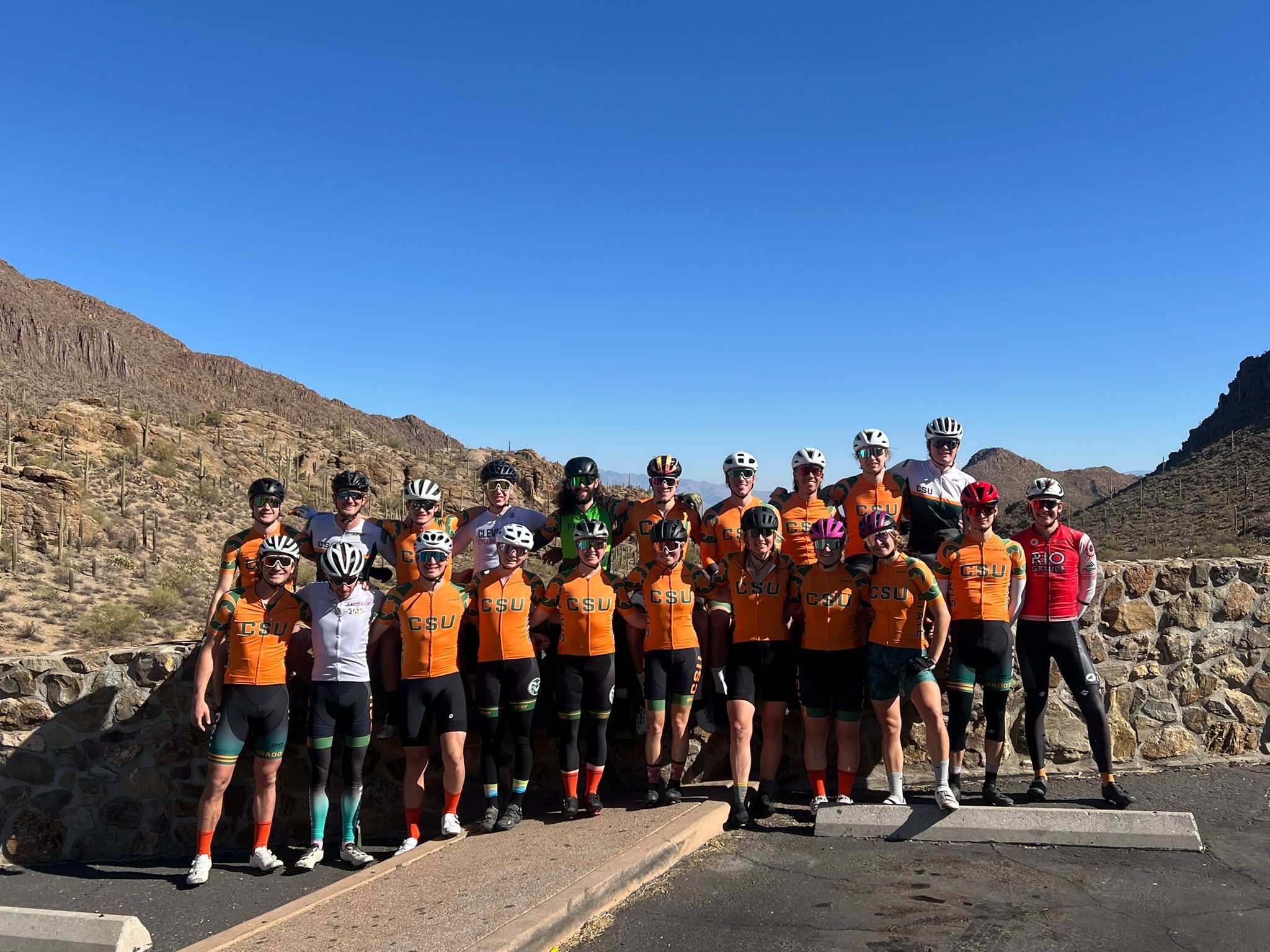 Last month, members of the CSU Rams Cycling team made the annual drive to Tucson for the team’s training camp. All 20 riders made the pilgrimage to the top of Mount Lemmon and bagged between 450 and 550 miles for the week in the process. The 14-hour drive is pretty rough, but the team was rewarded with warm temps, team comradery, and some excellent early-season fitness. Racing starts March 8th with the Frostbite Time Trial.