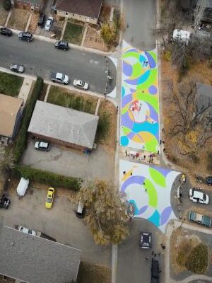 The City has selected local artist Jess Bean to lead the upcoming Asphalt Art installation at the intersection of Canyon Avenue, Magnolia Street and Sherwood Avenue (Funfact: I crashed at that intersection as a cat4 during the Fort Collins Criterium in 2001 or 2002) . Bean currently serves as the executive director of the Fort Collins Mural Project, has extensive experience working on collaborative creative installations and excels in building community through art.
