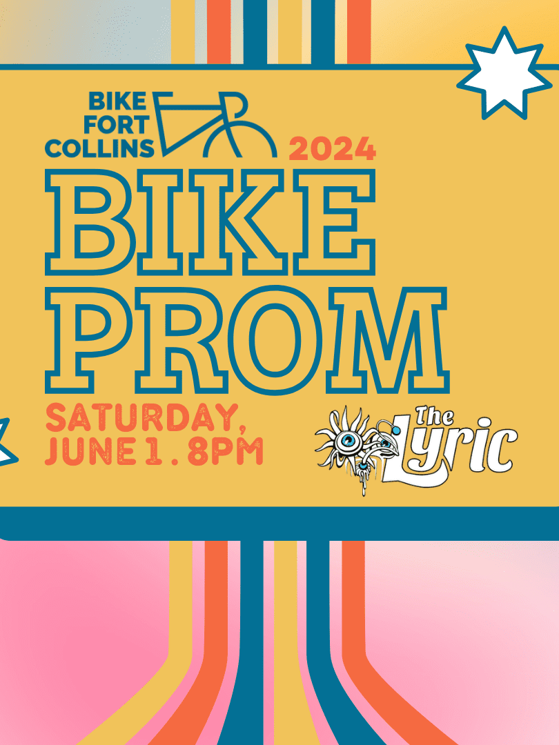 Bike Fort Collins is hosting Bike Prom at the Lyric on June 1st, 2024. Doors open at 8pm and tickets are $35.00. The Pre-Party starts at 5:00pm at Odell’s Brewing with a 7:30 Bike Parade to The Lyric.
