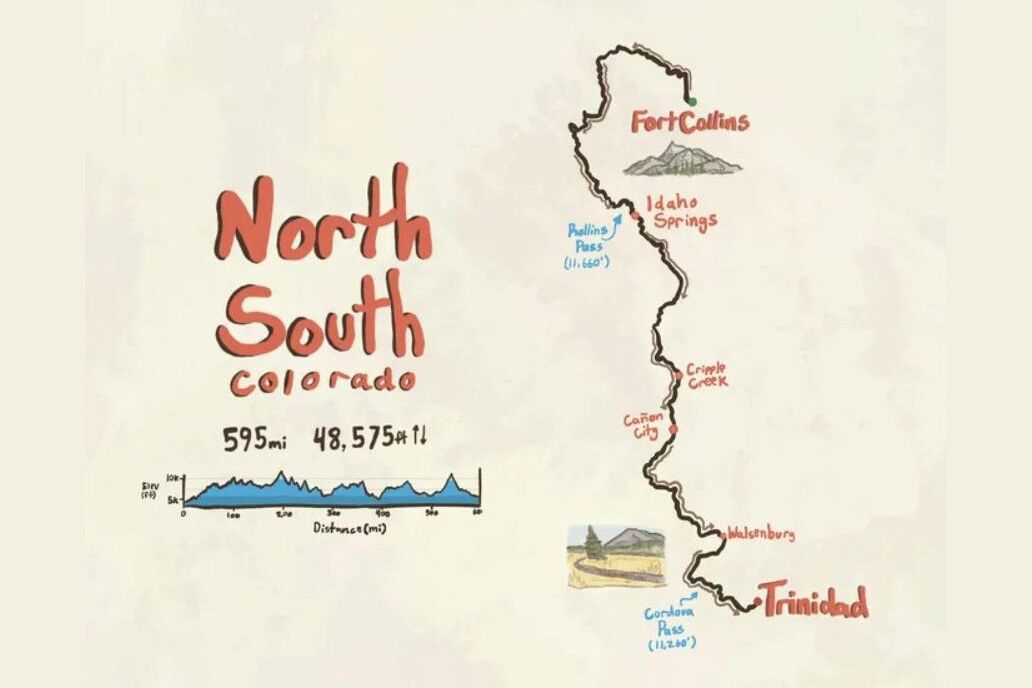The North South Bikepacking race is set to roll out from Fort Collins again in 2024. The 500+-mile self-supported gravel race (similar to the CTR) with roughly 48500 feet of elevation gain will end in Trinidad, CO. The route has about 200 miles of pavement, 300 of gravel, and 15-30 miles of singletrack (all +-).