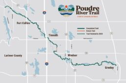 When finished, the Poudre River Trail will include roughly 18 miles within Fort Collins and another 22 miles managed by Larimer County, Timnath, Windsor, Weld County, and Greeley, linking communities along the Poudre River through scenic open space and wildlife areas.