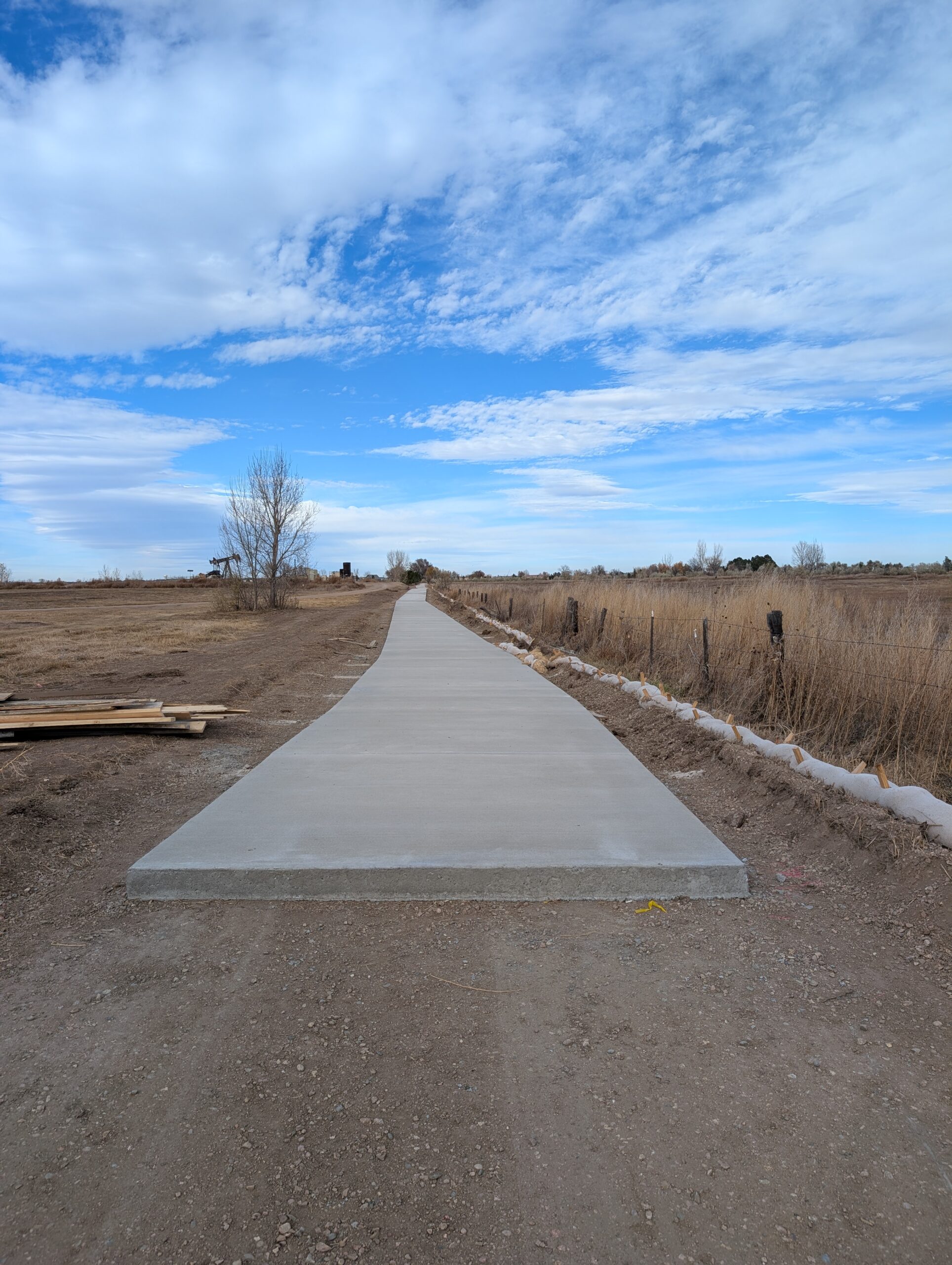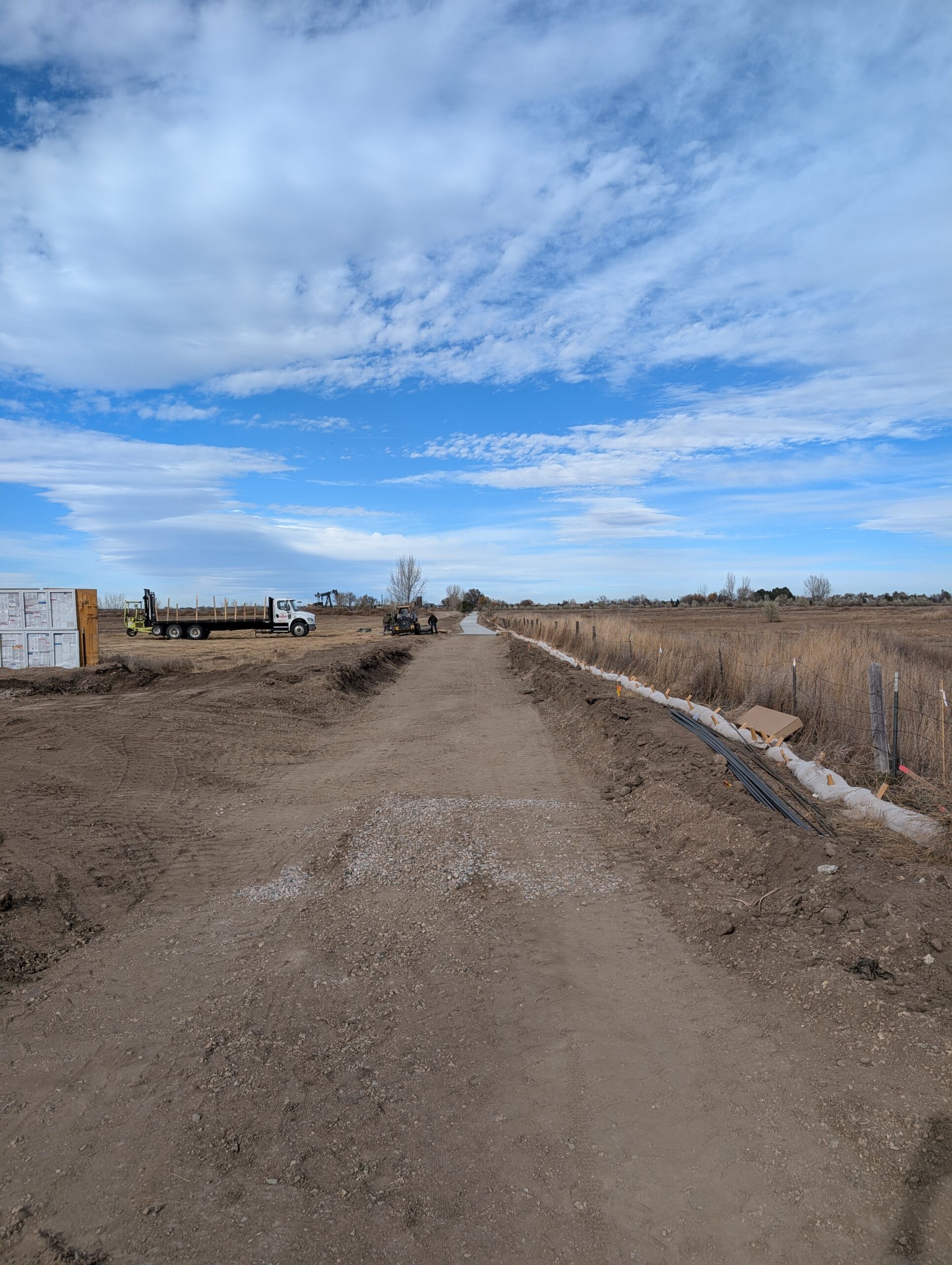 Thanks in part to an unseasonably warm fall, Connell Resources crews have made major progress. Less than 100 yards of pavement the bridge over the Greeley Number 2 Canal and some fencing are all that remain.